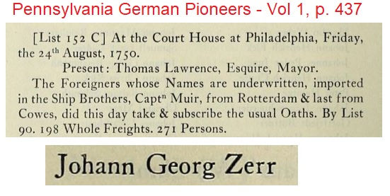 Magdalene (Zerr) Reese's relationship, if any, to Johann George Zerr is currently unknown.